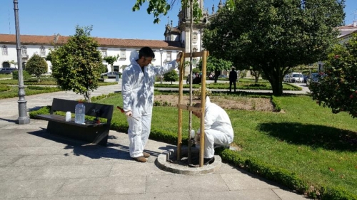No passado dia 28 de abril foi efetuado tratamento por endoterapia dos troncos e folhas com o objetivo de prevenir os ataques da lagarta-do-negrilho.