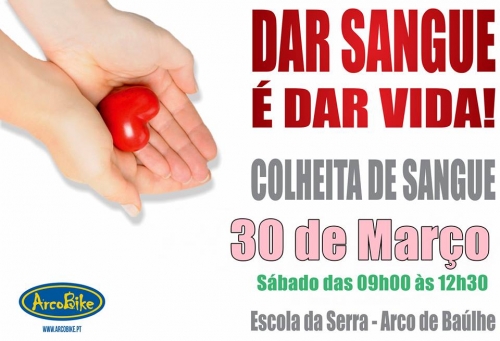 O ArcoBike Clube em colaboração com o Instituto Português do Sangue e da Transplantação vai realizar uma campanha de recolha de sangue, no próximo dia 30 de março (sábado), das 09h00 às 12h30, na Escola da Serra no Arco de Baúlhe.