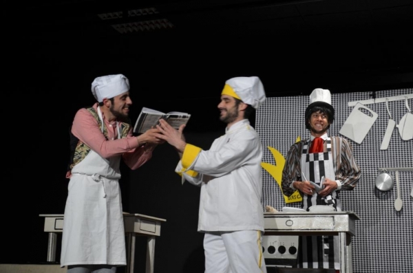 O espetáculo da noite de ontem, uma divertida comédia, é uma produção própria e resulta da